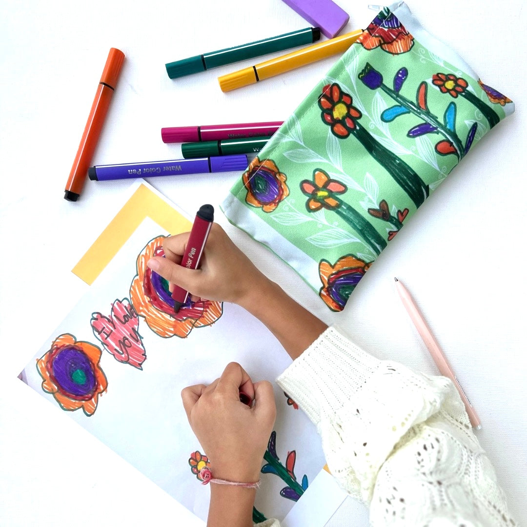 What better way to celebrate art than by celebrating our future artists! We turn kids’ cherished artworks into functional pieces like pencil cases, cushions, scarves & more!